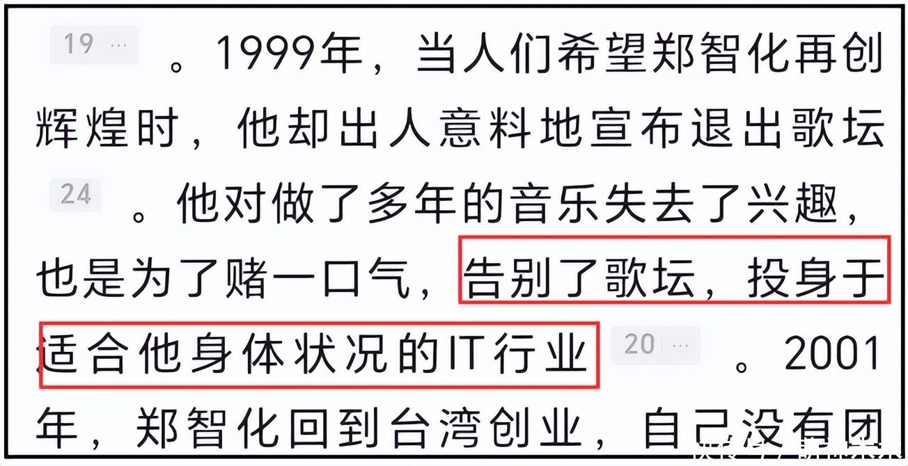 郑智化作为残障歌手,早年确实凭借《水手》、《星星点灯》等作品在两岸三地走红。1999年,郑智化选择退出歌坛,投身IT界创业,最后失败告终。
