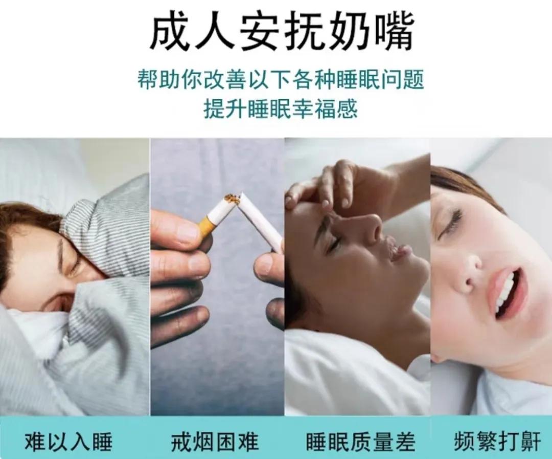能想出缓解失眠焦虑暂的宣传功效,暂且都还能算作“产品效果因人而异”之下的营销手段,但很多成人奶嘴产品直接加上了“辅助戒烟”、“帮助戒零食”、“防止夜间磨牙”等离谱功效,简直就差纳入“医疗辅助器械”了。
